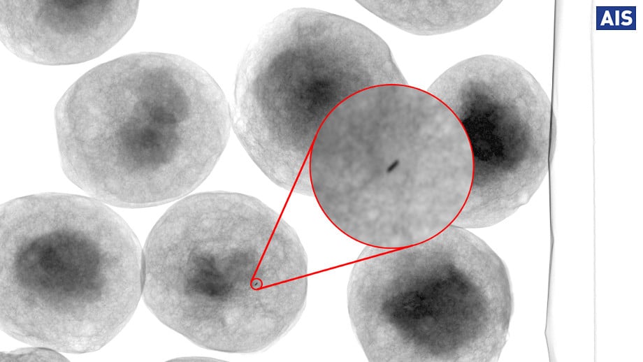 AIS X-Ray Micron Scan achieves a resolution of 9,000,000 data points in the same sample. This additional resolution ensures detection of incredibly small foreign bodies and is much less sensitive to the orientation and location of the contaminant within the product.